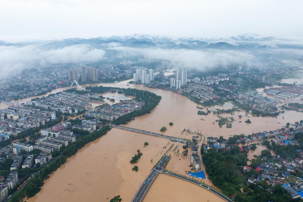 据了解,自6月18日以来,平江县降雨量高达759.6毫米,为当地自1961年有气象记录以来同期最高值。截至1日19时许,全县共计190座水库溢洪。在过去的48小时内,汨罗江平江站水位涨幅高达9.5米。平江县城两段堤防共计7000米出现洪水漫溢,短时强降雨后县城内涝,局地积水深达3米。平江多个乡镇受淹比较严重,多地出现山体滑坡、道路中断、房屋垮塌、洪水漫溢等灾情。