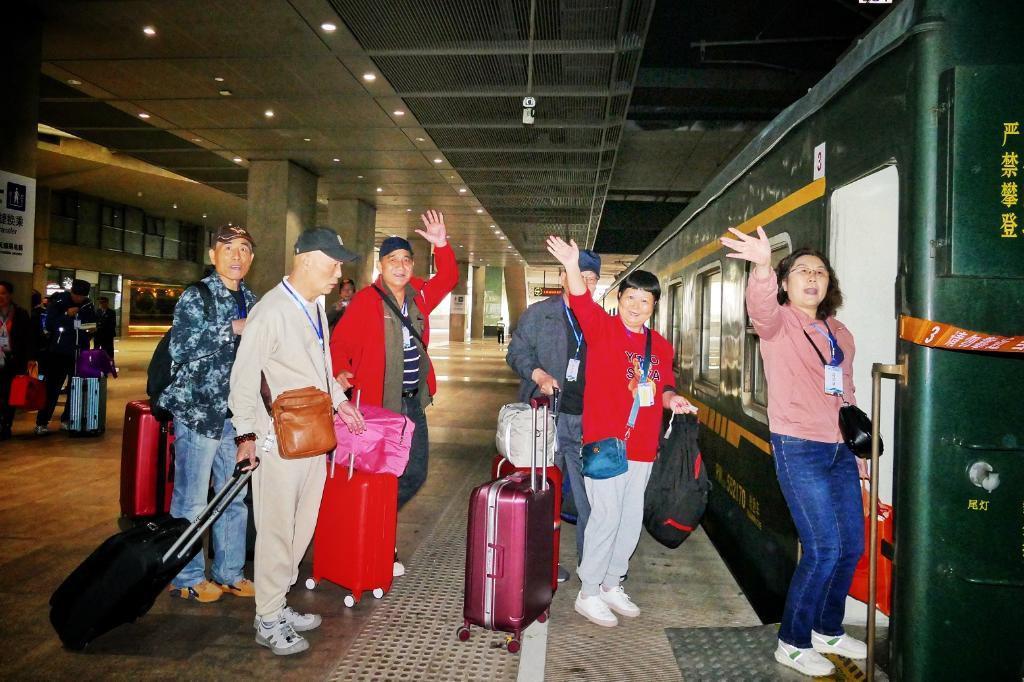 2024年4月20日,330名平均年龄65岁左右的旅客搭乘上海开往福建的旅游专列。图为旅客在铁路上海南站站台乘车出发。 新华社发(刘卫兴摄)