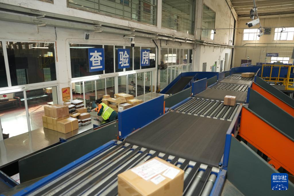 12月10日,在长沙国际邮件互换局,需要人工查验的进口包裹经流水线进入海关查验区等待查验。新华社记者 薛宇舸 摄pagebreak