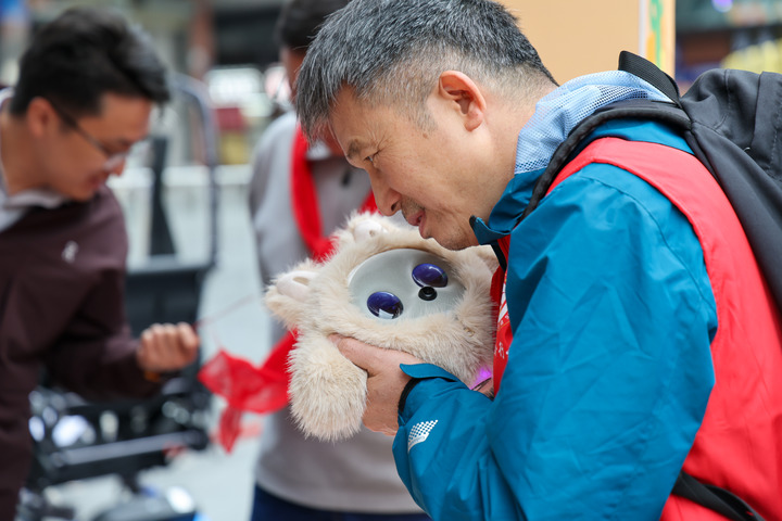 2026年1月21日,在深圳市罗湖区的银发消费品牌体验展区,观众与陪伴机器人对话。 新华社记者 梁旭 摄