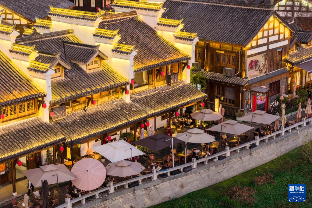 这是3月11日傍晚在穿紫河畔拍摄的常德河街(无人机照片)。新华社记者 陈思汗 摄pagebreak