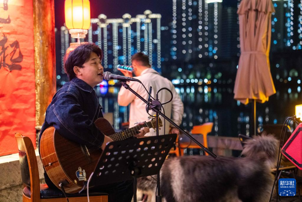 3月10日,歌手在穿紫河畔的常德河街弹唱。新华社记者 陈思汗 摄pagebreak