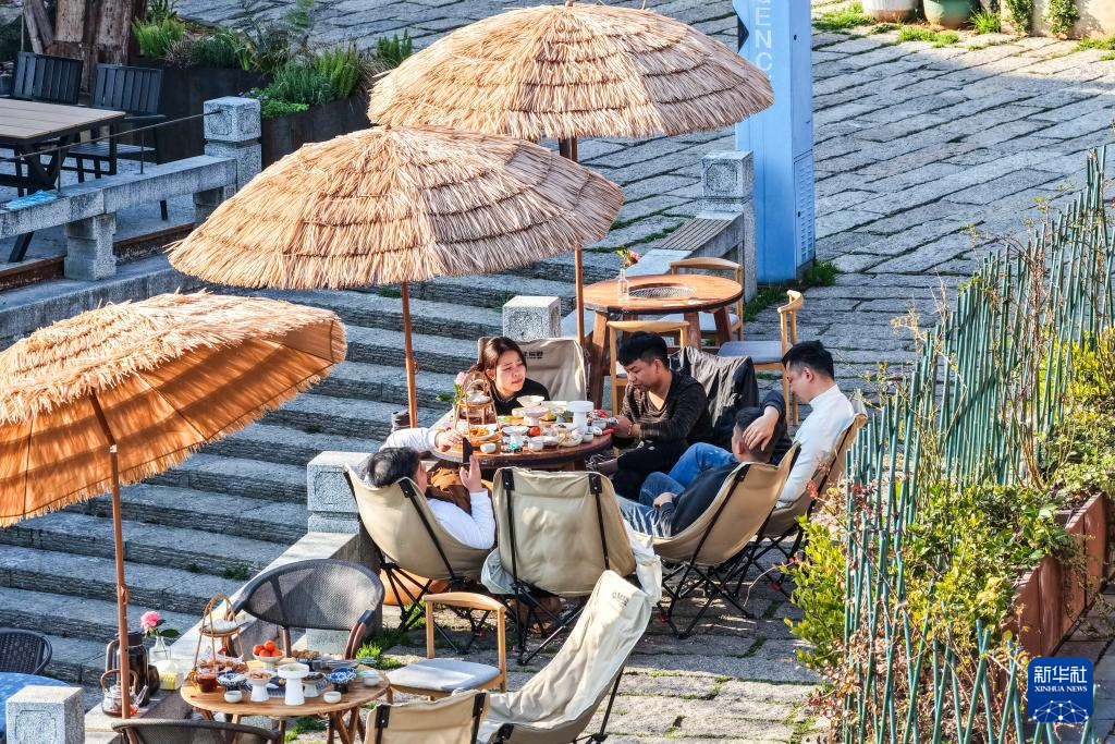 3月11日,游客在穿紫河畔的常德河街品茶。新华社记者 陈思汗 摄pagebreak