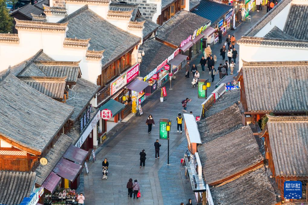 3月11日,游客在穿紫河畔的常德河街游玩(无人机照片)。新华社记者 陈思汗 摄pagebreak